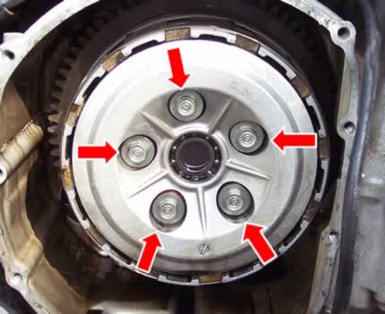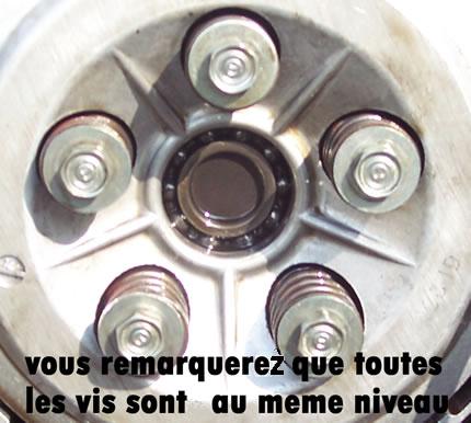Ensuite, enlevez les disques à l'aide d'un petit tournevis pour attraper les disque du fond. Remplacez les disques garnis par les neufs en alternant disques plat et disques garnies et les imbhibé légèrement d'huile pour évité que ca chauffe au démarrage.