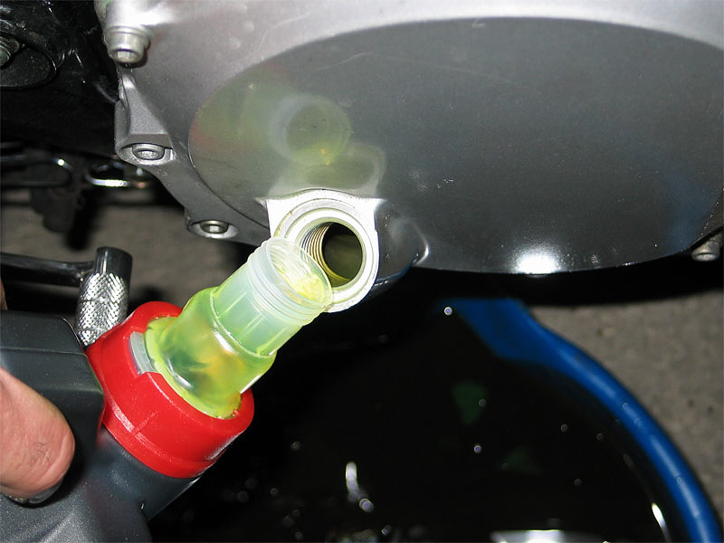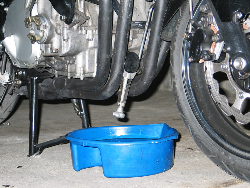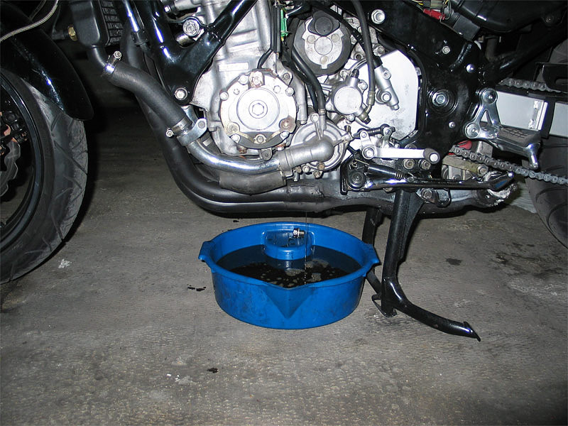 Tout d'abord, mettez votre moto en marche et laissez tourner le moteur quelques instants : l'huile chaude sera plus fluide et son écoulement sera facilité.
