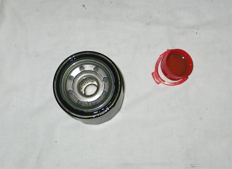 Nettoyez l'huile qui a coulée, ensuite huiler le joint de votre filtre à huile neuf avec de l'huile moteur :